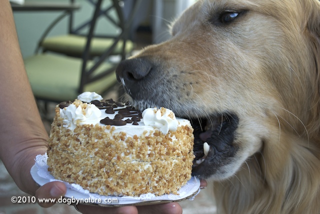 That is a beautiful cake! Nice job Kona, I like the last shot of you diggin’ in with a little frosting on your snooter :)