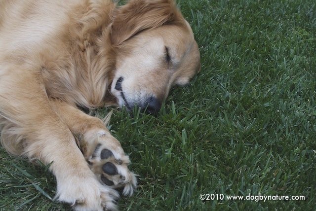 Kona was pooped after his hike and had a nap in the shade of the lemon tree, no doubt dreaming of chasing geckos.