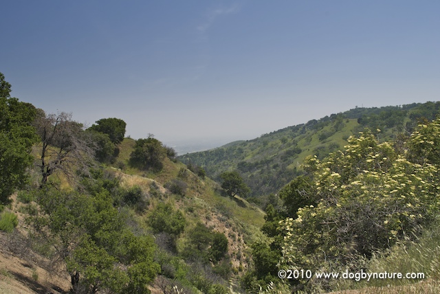 After a long work week, Kona’s big adventure this weekend was a hike up the East Canyon Trail in Santa Clarita’s Woodlands Park. Just north of Los Angeles, this is a 3.8 mile trail in the Santa Susana Mountains. The vegetation is lush and the trail winds though three species of oak, bay laurel, black walnut, big leaf maple and a forest of douglas fir growing at unusually low altitude.